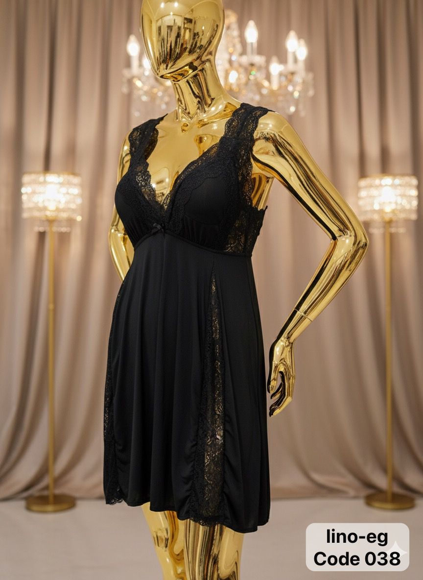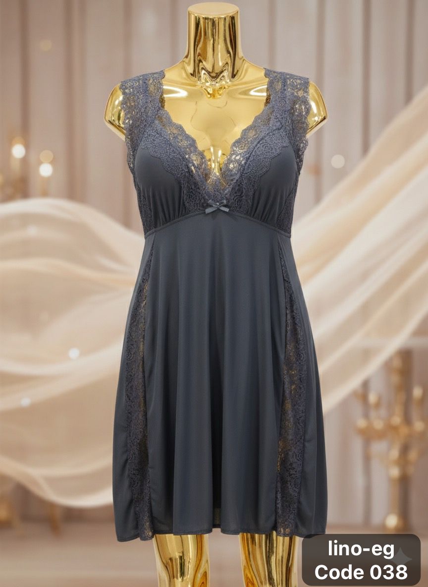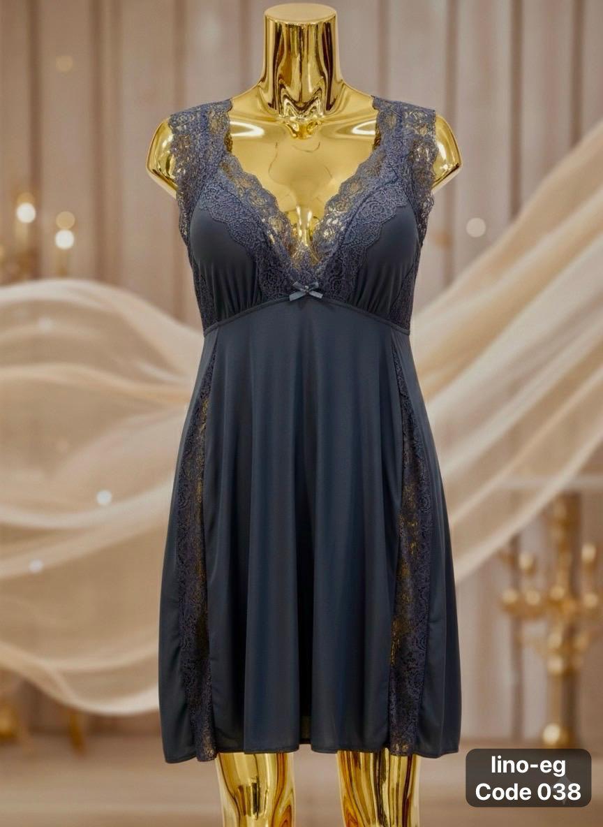 استعدي لتألق لا مثيل له مع هذا القميص الليلي الفاتن! تصميم يجمع بين الأناقة والجاذبية، مصنوع من قماش ناعم ينساب على بشرتك. تفاصيل الدانتيل الفاخرة على الصدر والجانبين تضفي لمسة من الرومانسية والإغراء. مثالي لسهراتك الخاصة ولإطلالة مريحة وفاخرة.