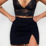 ويأتي مع صدر مزين بالدانتل تُبرز جمال الصدر وتُعززه. تصميم فريد من نوعه يُبرز جمال جسدك ويُعززه مع تفاصيل الدانتيل المُتقنة