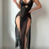 فستان جمال الدانتيل الأسود الساحر – كود 056